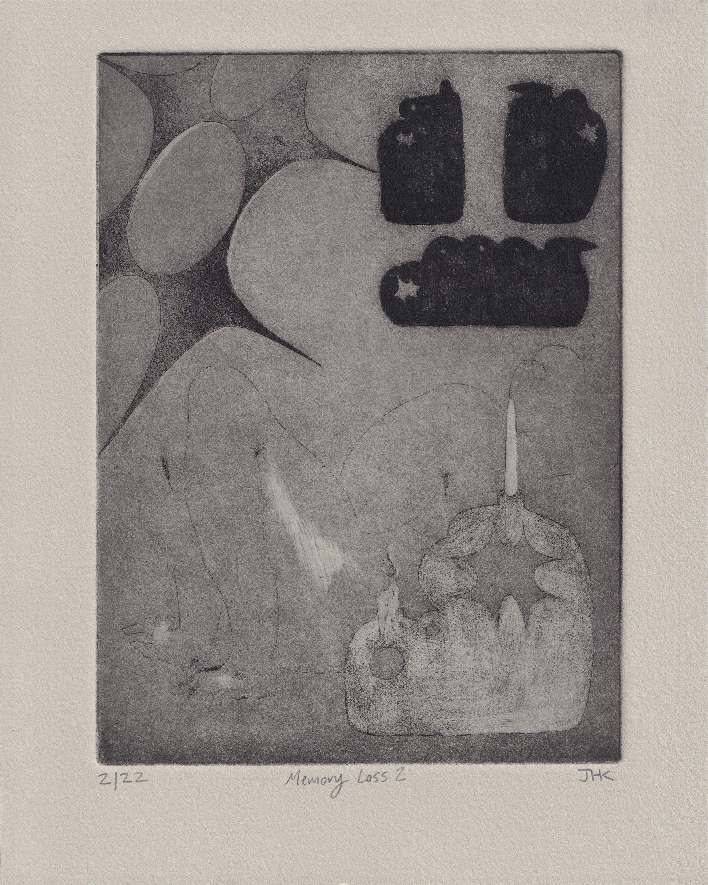 Memory Loss 2 2025 8inx10in. Etcching and dry point on grey Rives BFK.